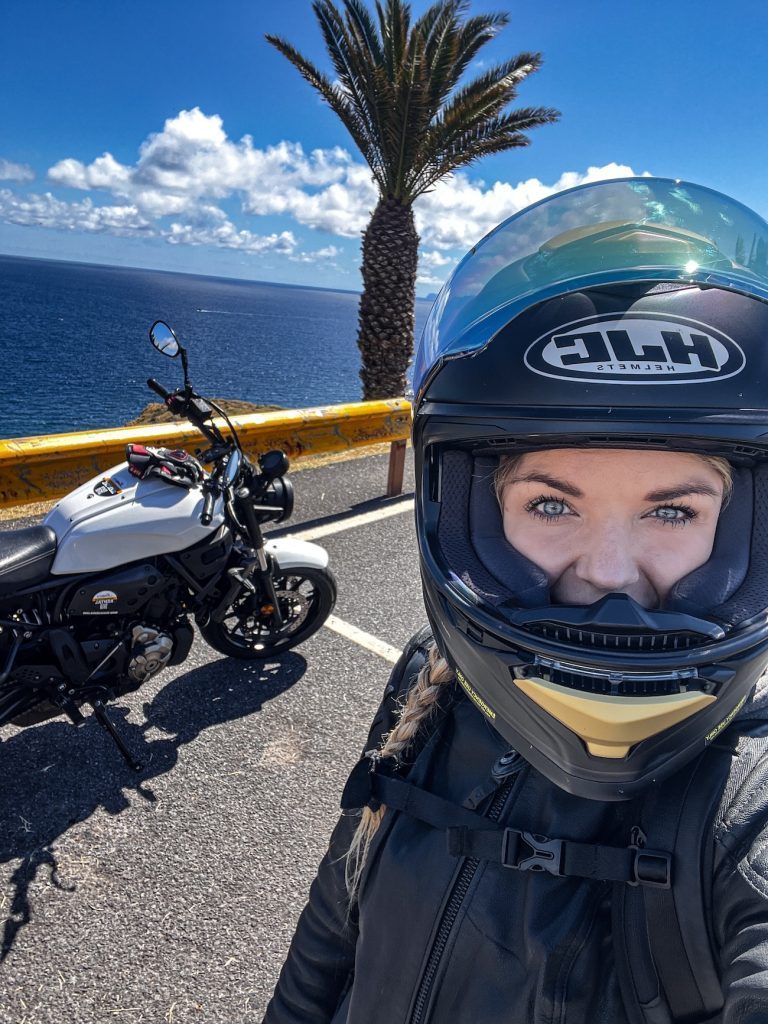 Turystka ze mnie żadna, chociaż południe Hiszpanii zjeździłam sportowym motocyklem, więc moje podróżnicze przygotowania oznaczały zazwyczaj: naładowany telefon, powerbank, dokumenty i gotówka. Odzież turystyczna? Nigdy wcześniej nie miałam jej na sobie. Na „sporcie” jeździłam niemal zawsze w dwuczęściowym, skórzanym kombinezonie. Tym razem miało być inaczej. Madera to wyspa wiecznej wiosny – temperatury około 20°C, ale też częste, niespodziewane deszcze i generalnie bardzo zmienne warunki pogodowe. A to wszystko dlatego, że Madera, a właściwie cały archipelag należący do Makaronezji, powstała w wyniku erupcji podwodnych wulkanów. Proces ten trwał miliony lat, a efektem jest obecny obszar i ukształtowanie terenu wyspy, z charakterystycznymi formacjami skalnymi i klifami. Teren jest wyjątkowo górzysty, co dodatkowo komplikuje przewidywalność pogody. Z jednej strony góry jest piękne słońce, a jak wyjdziemy już z drugiej, to może czekać na nas gwałtowne oberwanie chmury. Z tego powodu, pierwszy raz w życiu, wyposażyłam się w przeciwdeszczową odzież motocyklową. To w zasadzie były całe moje przygotowania. Po raz pierwszy miałam założyć na siebie kurtkę i spodnie motocyklowe z membraną. Resztę ciuchów „na zmianę” wzięłam po prostu z szafy, czyli 2 pary motocyklowych jeansów (jakby jedne przemokły) i 2 kurtki – jedna skórzana, a druga koszula z protektorami (również w razie co, jakby jedna przemokła podczas jazdy). Do tego jedna para butów, zwykłych do codziennej jazdy, bez żadnych specjalistycznych membran. „Minimalizm” – to słowo idealnie określa moje turystyczne przygotowanie do tego wyjazdu.