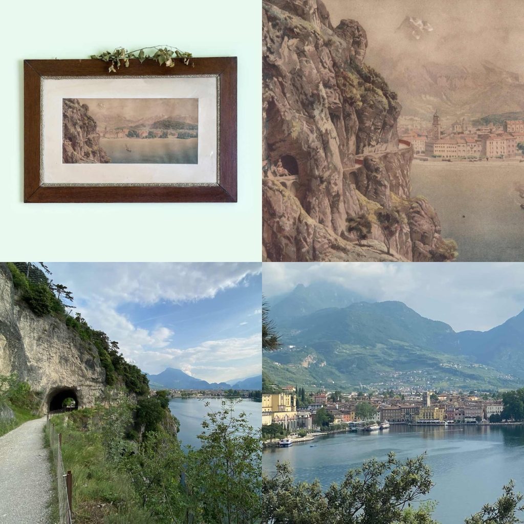 Dwa dni do wyjazdu. Pod wieczór z moim synem Mikołajem przeglądaliśmy w kompie moje archiwalne zdjęcia. Trafiłem na takie wykonane w salonie babci dzień po jej śmierci, kilkanaście lat temu z widoczną akwarelą i opowiedziałem mu historię sprzed dwóch akapitów. „Tato, to weź to wrzuć w Google Lens i znajdziesz”. I wyszło: widok na Riva del Garda, mniej więcej z punktu widokowego na ścieżce Ponale. Trochę się nie zgadzało, ale przecież i tak będę w okolicy i to znajdę. Byłem tym bardziej podekscytowany, niż pierwszym celem wycieczki.