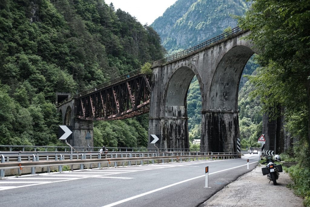 Nie będę już pisać dalej o oczarowaniu widokami. One tam są, trzeba to mieć z tyłu głowy, że są naprawdę piękne i skupić się na tym, co odstaje od tła w dowolną stronę. Zdecydowanie jest to trasa rowerowa Alpe – Adria z Salzburga do małej rybackiej wsi Grado nad Adriatykiem. To raczej mało wymagająca, 400 km trasa, która wyższe góry pokonuje tunelami, a od Tarvisio wykorzystuje infrastrukturę dawnej linii kolejowej. No więc widoki, Alpy, Włochy, wiadukty, mosty i szmaragdowo – mleczne rzeki płynące polami białych otoczaków.