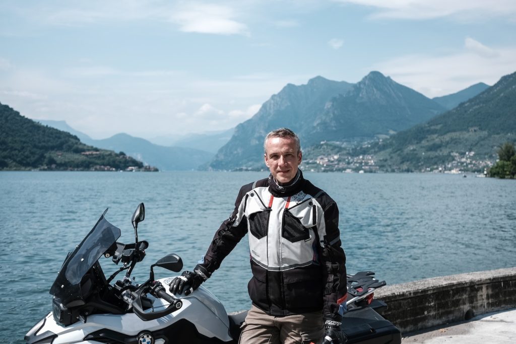 Droga nad jeziorem była znakomita, widoki jakby całą wielką Gardę ktoś zredukował jak Demi-glace i oto jest Iseo. Na północnym krańcu zatrzymałem się na parkingu, pogadałem z „lokalsem” na sportowym Suzuki. Aparat ułatwia pierwszy kontakt, bo poprosiłem go, żeby mi zrobił fotkę. Całkiem przypadkiem ów lokals zrobił mi najlepszy portret, jaki mam w życiu i ustawiając je później jako swoją profilówkę opatrzyłem komentarzem, że „bardzo lubię siebie z tego dnia”, co chyba świadczy o tym, że to właśnie trwał naprawdę dobry dzień. I dowiedziałem się jeszcze, że jadąc z Gardy nad Iseo trzeba koniecznie przejechać przez Ledro i Idro, że tu wszędzie jest pięknie, ale tam jest piękniej. Facet sam powiedział, że on nawet czasami nie może uwierzyć, w jakim pięknym miejscu żyje. I ja to szanuję.