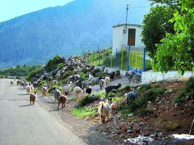 Po przekroczeniu granicy w miejscowości Hani i Hotit, wtoczyliśmy nasze maszyny na pozbawione asfaltu, albańskie drogi. Na szczęście okazało się, iż nawierzchnię „zwinęli” tylko na krótkim odcinku, bo jeszcze był w budowie. Jednak pierwsze kilometry pokazały, że jazda po Albanii wymaga szczególnego skupienia i uwagi. Miejsca prac drogowych nie są oznakowane, robotników od ruchu pojazdów oddzielają ułożone na jezdni kamienie. Spotkaliśmy kilka nieoznaczonych, pozbawionych dekli studzienek kanalizacyjnych i to na samym środku jezdni. Pędzone ulicami i wałęsające się barany, osiołki, kozy i inne zwierzęta to standard wszystkich dróg, element folkloru. Nawet w dużych miastach, na rondach wypasa się barany i kozy.