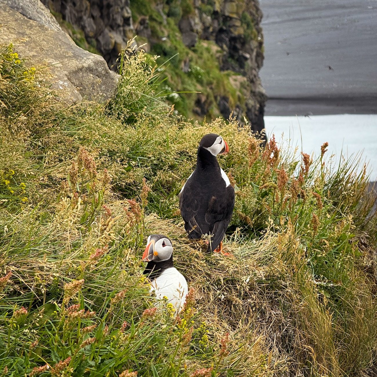 Poruszając się wzdłuż drogi nr 1, natknąłem się na niewielki półwysep Dyrhólaey z malowniczymi widokami, gdzie po raz pierwszy zobaczyłem maskonury. Śmieszne, urocze ptaki, które stały się wizytówką Islandii oraz Wysp Owczych. Widok z tego miejsca na rozciągający się po horyzont pas czarnej plaży, wody oceanu i zieleni to obraz, który mógłbym podziwiać godzinami.