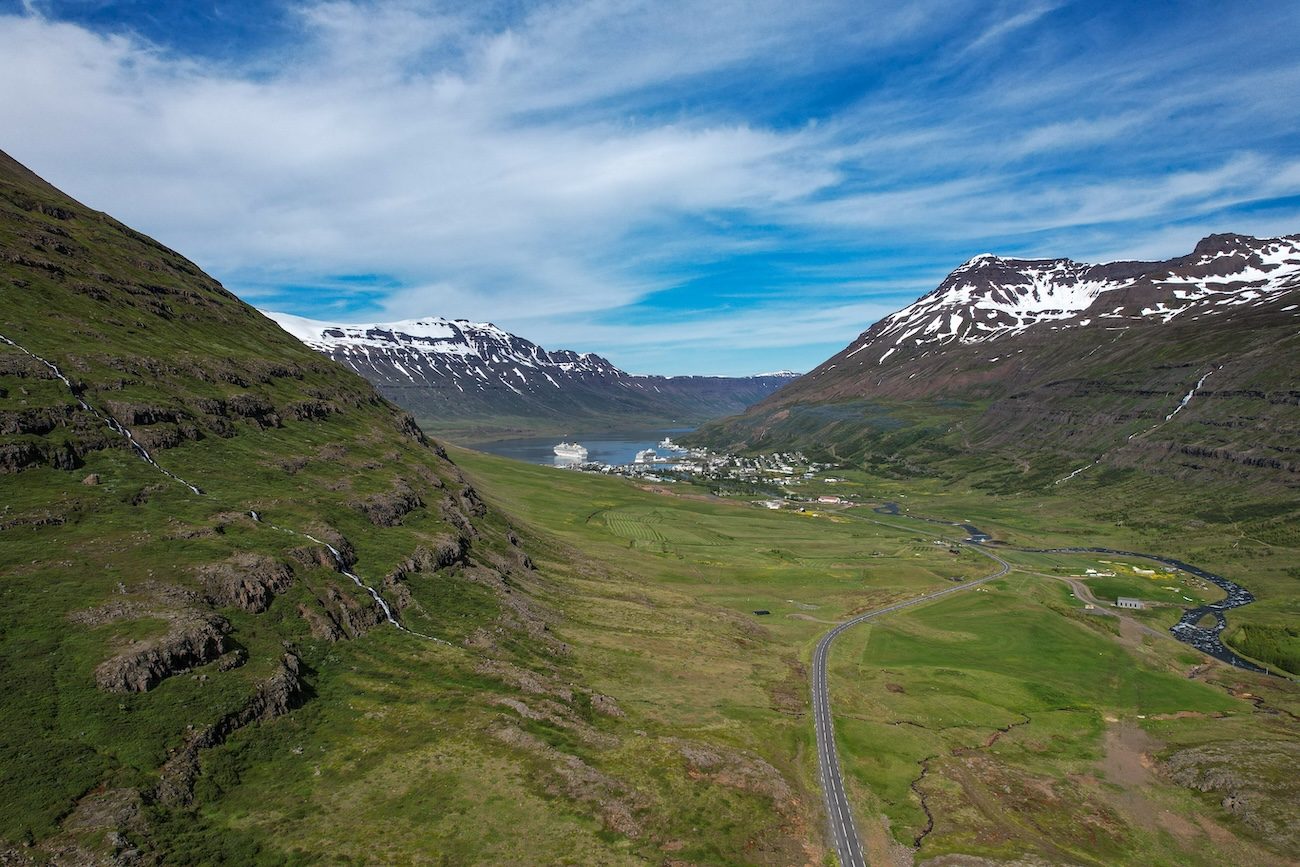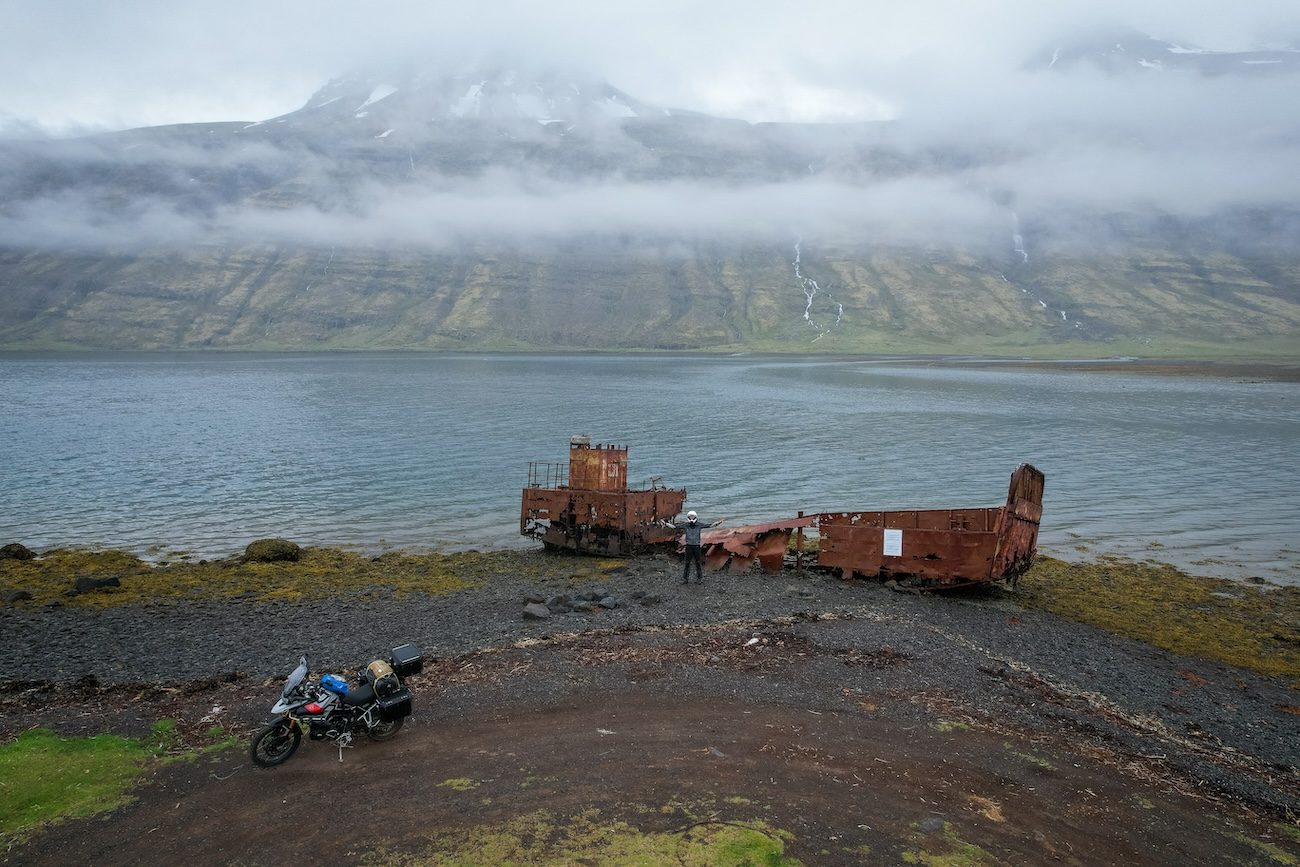 Pierwsze, co poczułem, gdy opuściłem port, to silny wiatr, który zmuszał mnie do walki na drodze, a czasami sprawiał, że moja szyja była zmęczona ciągłym naporem. Pierwszego dnia udałem się w kierunku latarni morskiej Dalatangi. Stamtąd mogłem ujrzeć prom opuszczający wyspę, którym przypłynąłem. Było tam jednak coś więcej, co wywołało we mnie pozytywne wrażenia. Droga 953, licząca około 46 km, była w całości szutrowa i prowadziła w stronę fjordu Mjóifjörður. Było mokro, widoczność ograniczała gęsta mgła. Dotarłem do przełęczy, z której rozpościerał się przepiękny widok na dolinę. Gdzieś tam przy brzegu znajdował się porzucony wrak statku US Navy, z czasów II wojny światowej, a wcześniej mijałem kaskadowy wodospad Klifbrekku. Przy latarni morskiej, która była końcowym etapem, spotkałem starsze małżeństwo z Polski podróżujące samochodem terenowym. To niezwykłe, że nawet w takim zakątku można trafić na rodaków.