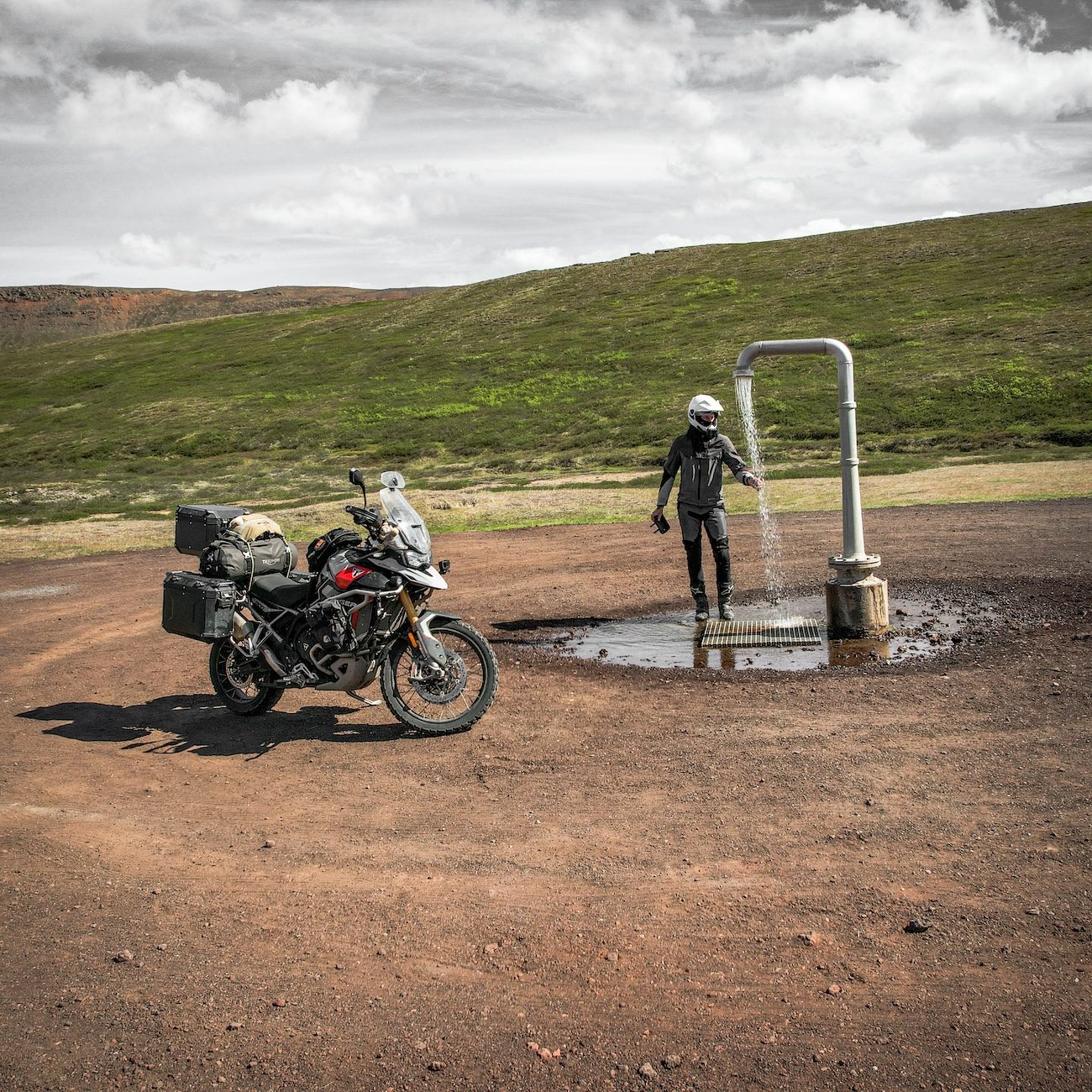 Gdy przygotowywałem się do podróży na Islandię, słyszałem ostrzeżenia, że samotna podróż tam to niekoniecznie dobry pomysł, a pogoda bywa nieprzewidywalna i niebezpieczna. Mimo to nie miałem wtedy własnych doświadczeń, które mogłyby zbudzić we mnie przydatny strach. Dopiero gdy siedziałem schowany za motocyklem, poczułem, jak silny wiatr uniemożliwiający zwykłe poruszanie się, zrozumiałem, z czym się mierzę. Próbowałem podnieść Tigera, nakłonić Szwajcarów, abyśmy to zrobili wspólnie – bezskutecznie. Choć w przypływie adrenaliny udało mi się dźwignąć ważącego 290 kg Tigera, wiatr prawie nas zwalił z nóg, więc wróciłem do punktu wyjścia.