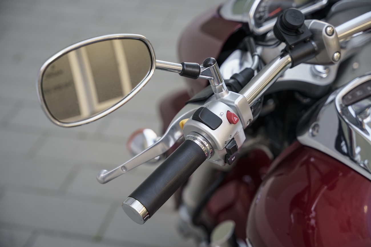 Zasiadając na VZ1500, od razu czuję się, jakbym chwycił byka za rogi. Szeroka kierownica, rozłożysta konsola na baku, jeszcze szerszy zbiornik i fotel – duży, ale krótki. Do tego klasyczna, cruiserowa pozycja: nogi wyciągnięte do przodu, ręce szeroko, klata na wierzchu. To bardziej „atak” niż relaks. Podobne uczucie miałem ostatnio przy testach Ducati Streetfightera, a to mówi samo za siebie – w dzisiejszych czasach takie ustawienie górnej części ciała jest raczej domeną zupełnie innych motocykli.