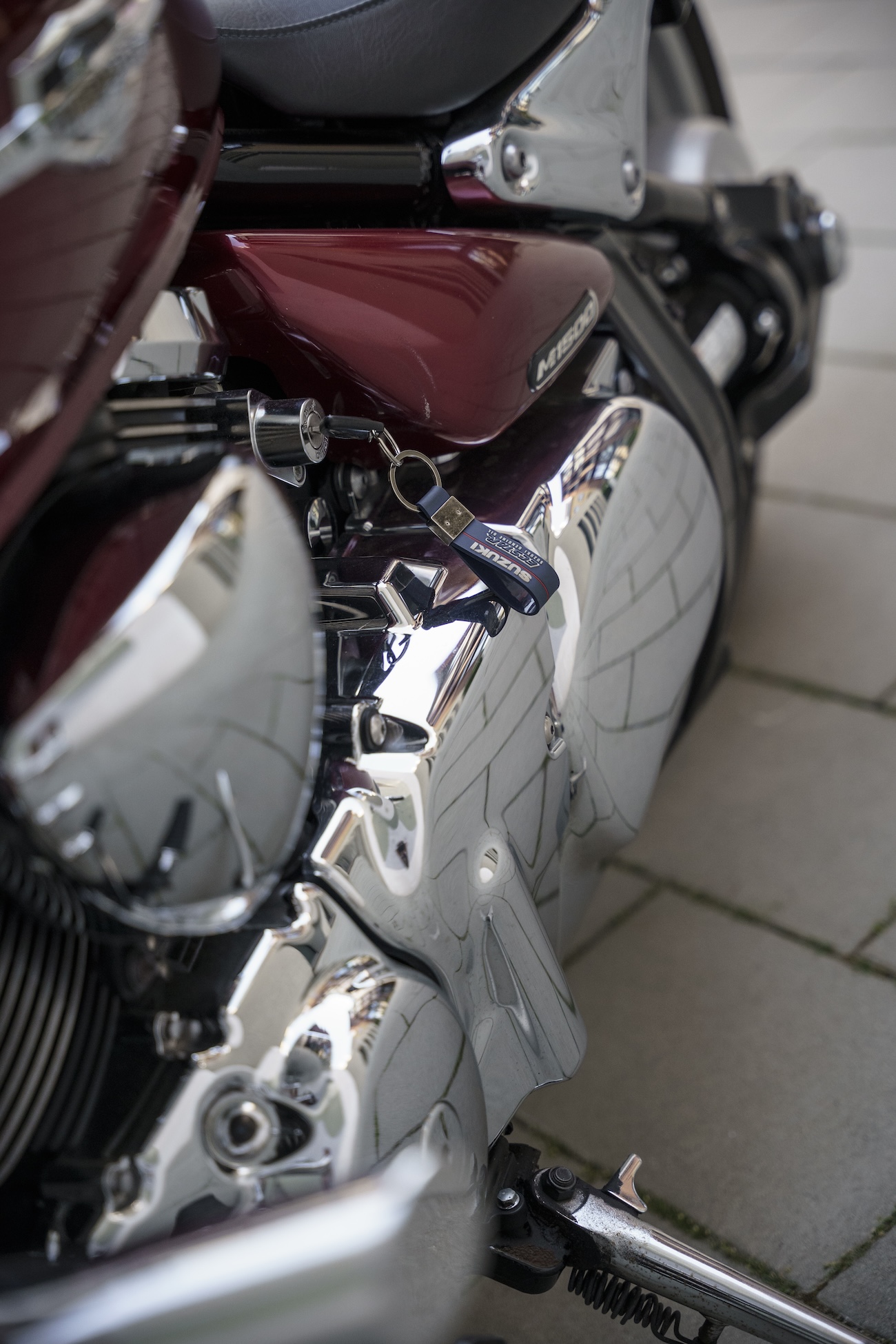 Kolejnymi smaczkami są aluminiowe obręcze kół w kształcie wiatraków, dodające bryle nieco dynamiki, no i charakterystyczny, szeroki zbiornik paliwa na którym znalazła się chromowana konsola z podświetlanymi ikonami. VZ1500 z definicji miał być rozłożysty – i taki właśnie jest. Widać to też w detalach: masywne podstawy setów podnóżków, ciężkie klamki… Materiału który na nie poszedł, wystarczyłoby na trzy współczesne motocykle. Dziś każdy goni za ujęciem masy, wtedy nikt się tym specjalnie nie przejmował. A szkoda – bo widać, że kilka kilogramów można by spokojnie zgubić i uczynić z tego sprzętu bardziej wojownika Ninja niż Sumo.