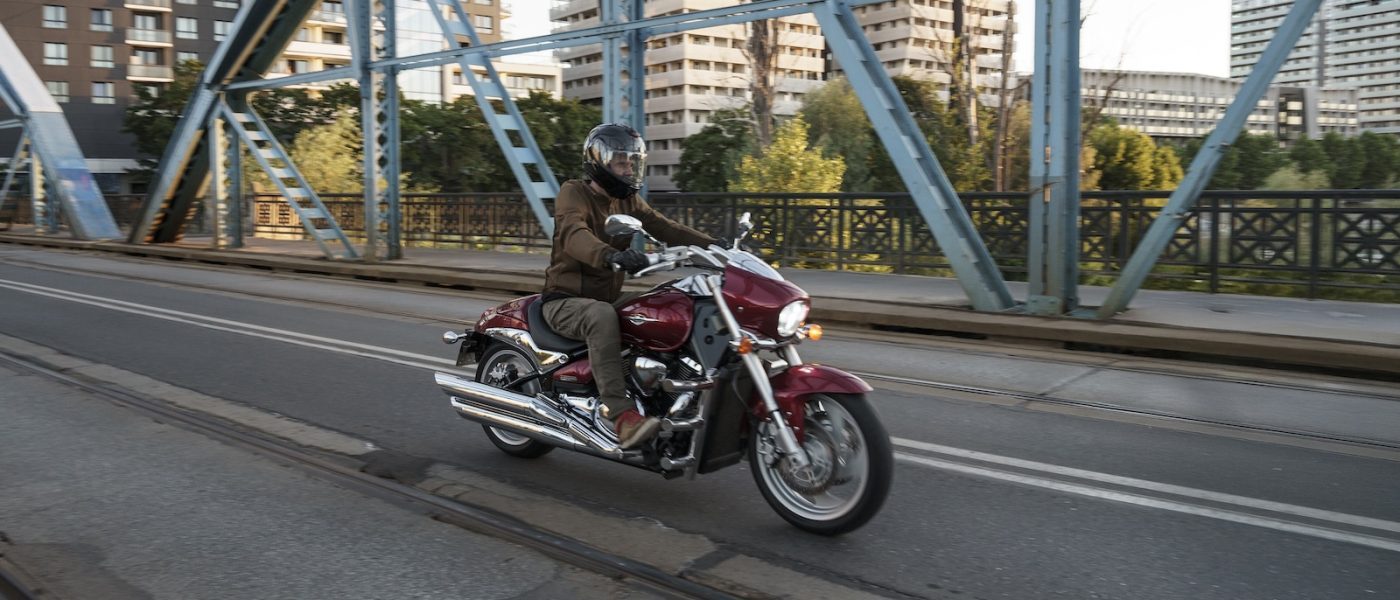 Na wprost VZ1500 jedzie jak po sznurku. Idealny do autostradowych przelotów, kiedy można docenić solidny moment obrotowy i stabilność. Gorzej z ochroną przed wiatrem ale powercruiserem jeżdżą przecież tylko prawdziwi mężczyźni a tacy biorą wszystko na klatę. Nawet wiatr i komary. W zakrętach masa jest wyczuwalna, motocykl lubi się „położyć” w łuku i trzeba go trzymać. W szybkim zakręcie nie ma mowy o lekkości – musisz go pilnować do samego wyjścia. W mieście? O dziwo radzi sobie całkiem dobrze. Rozstaw osi krótszy niż w M109R, kierownica szeroka – dzięki temu manewrowanie nie jest aż tak uciążliwe. Nowicjuszom ta potężna masa i szeroka tylna guma mogą sprawiać problemy.