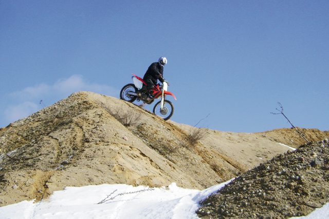 Czterosuwowy silnik CRF co najmniej dorównuje jednostkom 2T, jeśli chodzi o jego odporność na zalanie wodą, ekstremalne przeprawy przez błoto itp. Wjazdy do głębokiego bajora nic nie znaczą, gorący silnik czy wydech na pewno nie pękną. Wcześniej sam powtarzałem za innymi, nie mając doświadczenia, że dwusuw jest prostszy w konstrukcji i trudniejszy do uszkodzenia podczas jazdy przeprawowej. Rzeczywistość pokazuje jednak co innego. Rozbudowane puszki rezonansowe układów wydechowych dwusuwów są bardzo podatne na uderzenia. Każde wgięcie powoduje zmianę charakterystyki silnika, nie mówiąc o tym, jak bardzo odczuwa się pęknięcie lub dziurę. Z reguły silnik traci bardzo dużo na elastyczności. Zniszczyć mało wystające kolanko w CRF 450R jest trudno (chociaż mnie się udało), poza tym amator nie jest w stanie wyczuć zmiany osiągów. Ważnym szczegółem podczas długich jazd przeprawowych, są wrażenia akustyczne. Można je opisać jednym zdaniem; kierowca nie cierpi z powodu brzęczenia dwusuwowej jednostki. Narzekać mogą raczej ludzie z otoczenia. Odgłosy mechaniczne silnika są bardzo ciche, ale po przejechaniu 45 motogodzin wyraźniejsze. Cały basowy odgłos pracy zostaje jak gdyby za motocyklem. Odjeżdżająca Honda CRF 450R ma przepiękny gang silnika wywołujący respekt. Niestety, model 2008 został znacznie wyciszony w porównaniu wersji 2006. Oczywiście nic nie stoi na przeszkodzie, by wstawić akcesoryjną końcówkę, jeśli nie starujemy w zawodach, gdzie mierzona jest głośność. Nikt się do nas nie przyczepi, zakładając, że motocykl wykorzystujemy zgodnie z przeznaczeniem, czyli na obiektach zamkniętych.