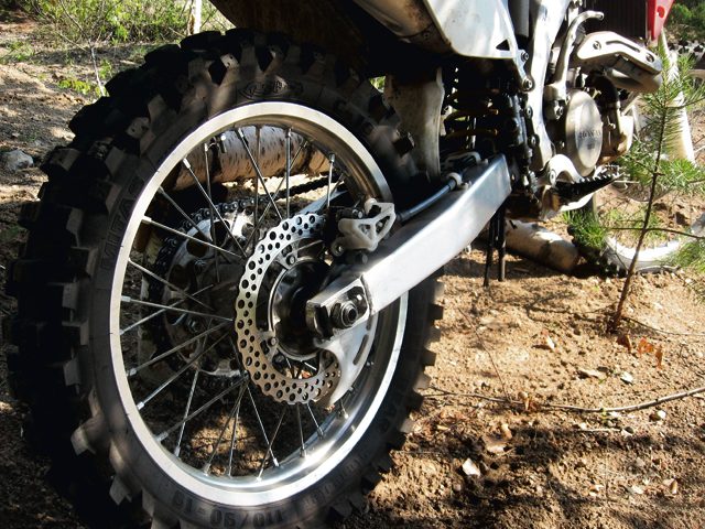 Parę przykładów z serwisówki. Docieranie – 25 km (wyjątkowo nie są podane motogodziny) bez gwałtownego przyspieszania i maksymalnego otwierania przepustnicy. Potem Japończycy proszą o sprawdzenie luzów zaworowych. Sprawdziłem – na szczęście były w normie. Piszę „na szczęście”, ponieważ luz zaworowy Hondy CRF 450R regulujemy płytkami. Po 7,5 motogodziny zmieniamy łańcuch i zębatki. Po 15 motogodzinach – tłok i pierścienie, po 30 tłok, pierścienie i sworzeń tłokowy. Nic z tych rzeczy nie robiłem, a motocykl miał się całkiem dobrze. Oczywiście nie pochwalam nietrzymania się zaleceń instrukcji, ale w praktyce okazało się, że motocykl może wytrzymać znacznie więcej. Zęby w zębatkach tylnej i przedniej zaczęły się podcinać i lekko „kłaść” (przednia) po około 24 motogodzinach. Zacząłem bardziej dbać o prawidłowe naciągniecie łańcucha i proces zużycia wyraźnie zwolnił. Seryjnie montowany jest łańcuch bez uszczelek o-ring, dzięki czemu obniżono straty mocy na przeniesieniu napędu. Dodatkowo seryjna zębatka jest wykonana ze stopów aluminium, co również nie wpływa na jej trwałość.