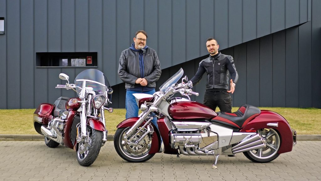 Prezentowane dwa motocykle zostały sprowadzone kilka lat temu z USA do Polski przez firmę Polkom. Trafiły prosto do klientów, ale teraz szukają nowych nabywców. Obydwa egzemplarze są w identycznym malowaniu, ale jeden z nich otrzymał kilka akcesoriów, mających za zadanie przystosować go do turystyki (m.in. boczne kufry, akcesoryjne siedzenie z opcją rozłożenia oparcia dla pasażera, szyba, spacerówki). Łączna wartość tych akcesoriów to kilka tysięcy dolarów… Drugi egzemplarz, ten z akcesoryjnym i spektakularnym wydechem Rivco, służy wyłącznie do jazdy solo.