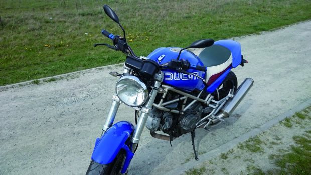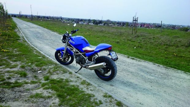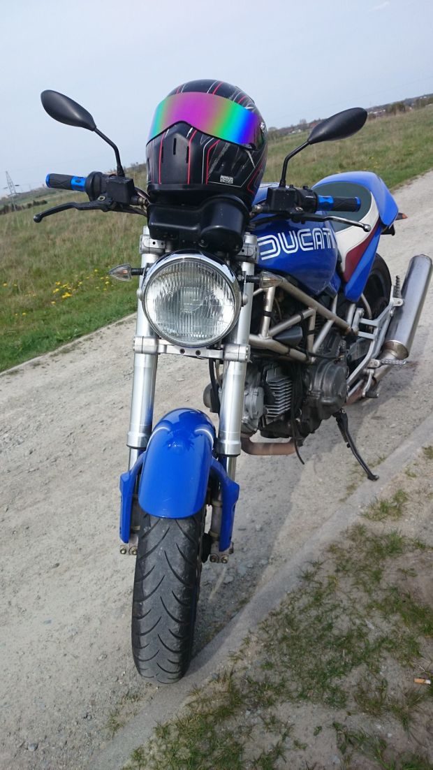 Kiedy podzieliłem się z przyjaciółmi myślą o zakupie, usłyszałem: „Włoszyzna to tylko do zupy się nadaje, w co Ty się pakujesz?”. Ale jak to z miłością bywa, jest ślepa. Rozpocząłem poszukiwania. Po kilku zakończonych fiaskiem wyjazdach na stronie klubu DOC Poland znalazłem ofertę sprzedaży niebieskiego Monstera. Gdyby to była wściekła czerwień, mroczna czerń albo żółty… Ale niebieski? Przecież takiego malowania nie było w gamie barw Ducati! Lecz pomyślałem, że nic nie szkodzi sprawdzić. Po wstępnych oględzinach mechanik wydał werdykt, że motocykl wart jest uwagi. Kiedy odpalił, w małym warsztacie ziemia się zatrzęsła, a ja wpadłem w trans. Chodził niczym Spitfire (najlepszy angielski myśliwiec). Musiałem go mieć…